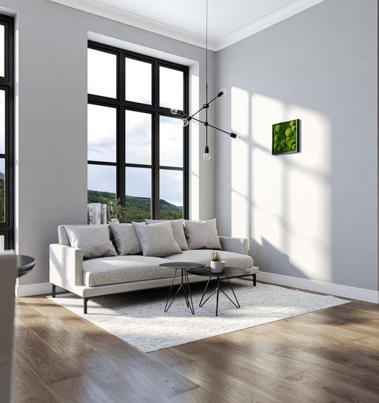 Ved å bringe naturen inn, skaper du en lun og beroligende atmosfære. Naturlige elementer i hjemmet er med på å øke velvære og senke stress. Mosebilder er et godt valg da de ikke krever vedlikehold. De passer perfekt inn i alle rom, både hjemme og på hytta, til og med i rom uten naturlig sollys. Mosebildene er eksklusive, og passer godt inn i kombinasjon med annet interiør.